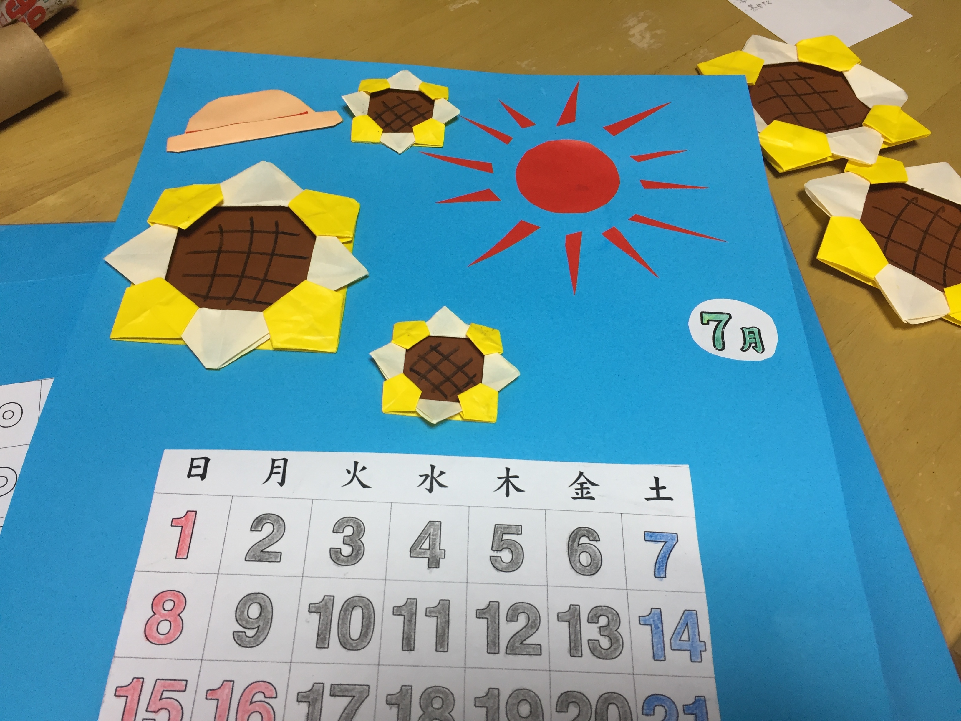 七夕の笹にいっぱい飾りをつけて、素敵なカレンダーが出来上がりました(^_^)